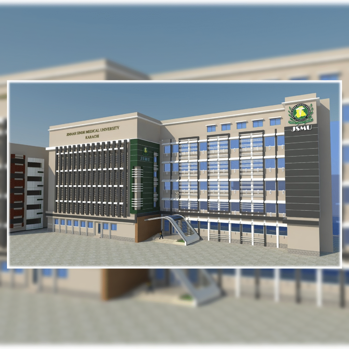 The Façade / Elevation of the Main Building at Jinnah Sindh Medical University, Karachi …